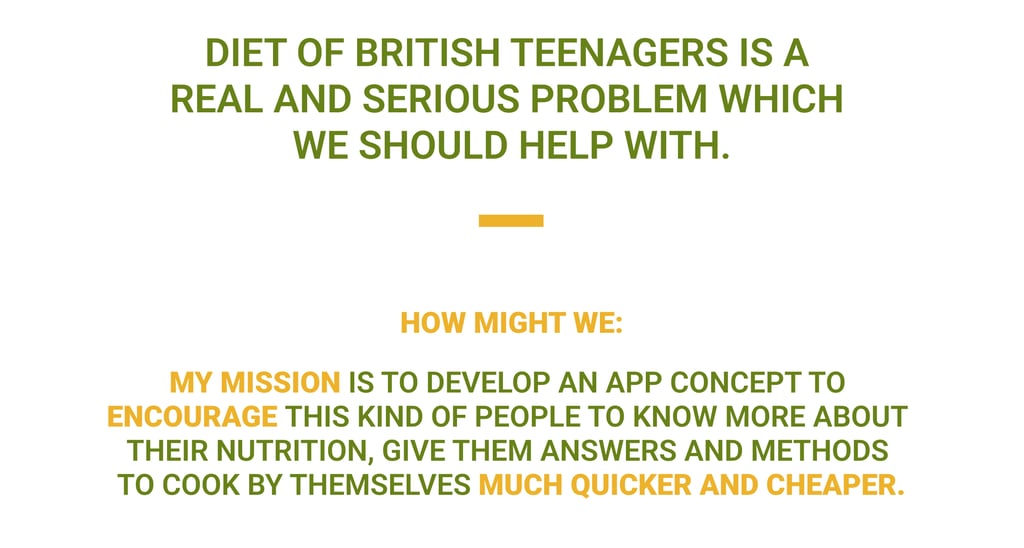 My mission is to develop an App concept to encourage this kind of people to know more about their nutrition, give them answers and quick methods to cook by themselves much quicker and cheaper. We will focus on people between 18-36 years old, talented with technology, independent and starting to be concerned about their health and future. They could be University/College students, young workers or entrepreneurs or just sportsmen by devotionals.