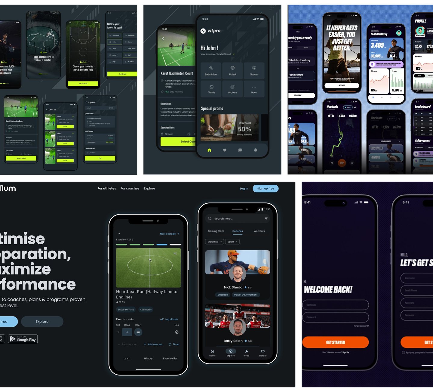 For the platform’s design, I drew inspiration from visual styles, layouts, colour schemes, and UI patterns commonly used in sports analysis tools and e-learning platforms.