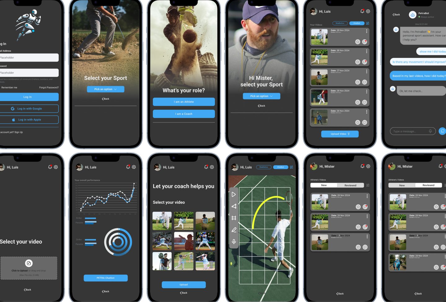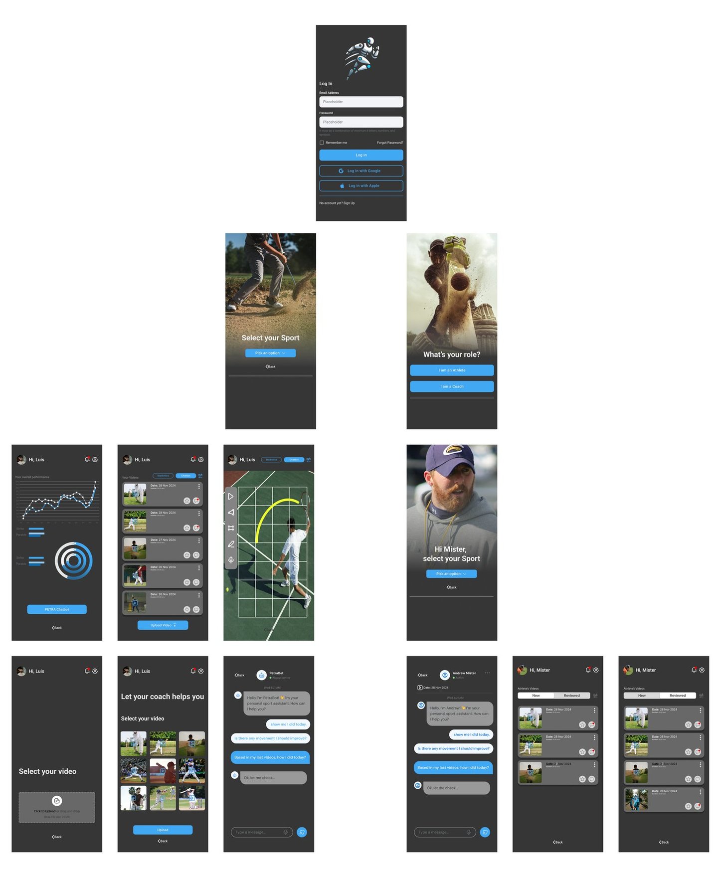 The final design of InnoSport AI balances functionality, clarity, and a modern aesthetic, following the client’s request for a dark theme. The UI prioritises data readability, intuitive navigation, and seamless interaction between athletes and coaches.